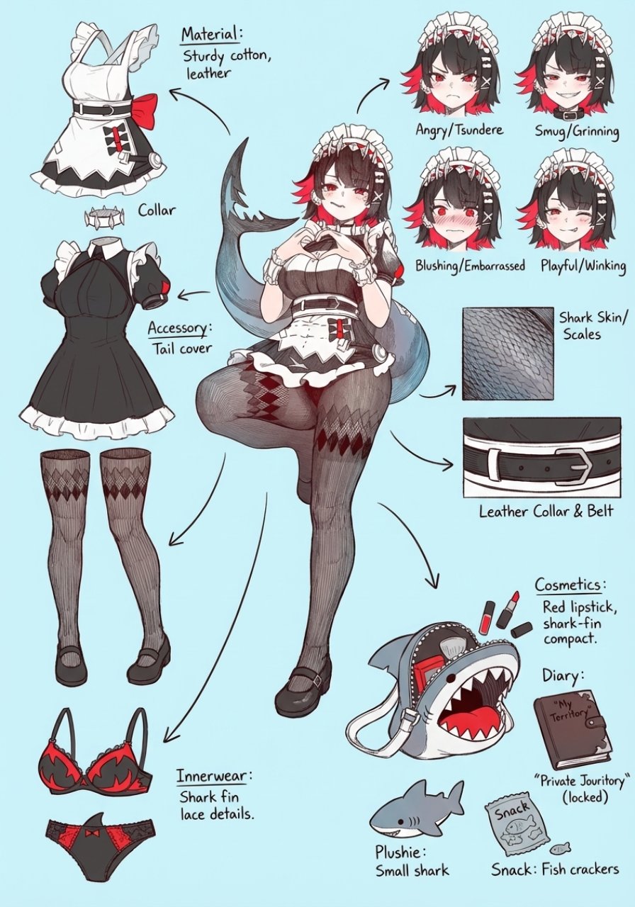 下着はサメのヒレっぽいレースとか凝りすぎだろ。シャークスキン?鱗?革製の襟とベルトかよ。