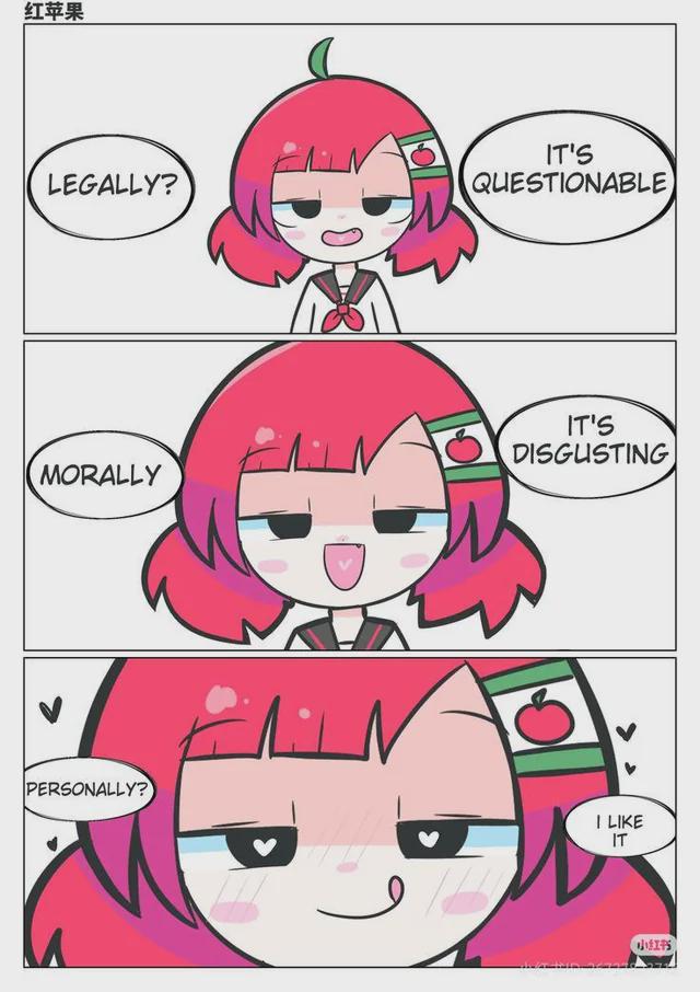 (画像翻訳: 紅林檎:法的にはどうなんだ?道徳的には最悪。だが俺は好きだ。)