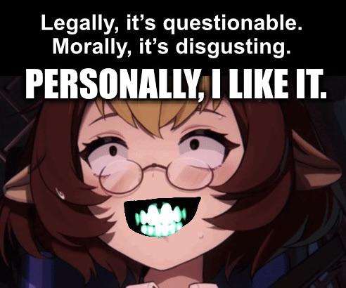 (画像翻訳: 法律的にはグレー、道徳的にはアウト。だが個人的には大好物だわ。)
