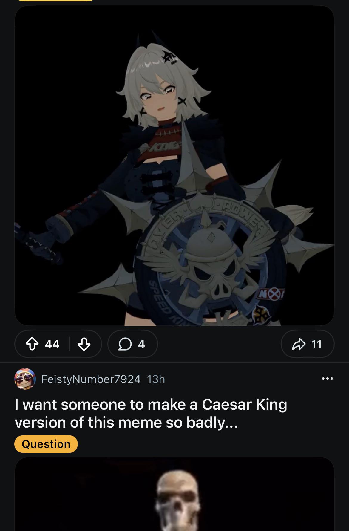 - 「誰か作ってくれ」という要望に応え、キング・シーザーが盾を叩きながら咆哮するミームGIFが作成された。
