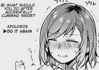 (画像翻訳: Q:うっかり最後までしちゃった後はどうすればいい? 謝る。おかわりする。う〜〜ん プル)