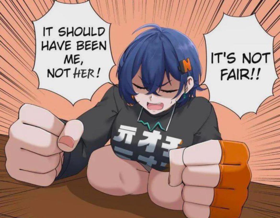 (画像翻訳: 俺だったはずなんだ!あいつじゃなくて!不公平すぎるだろ!! 元オナ)