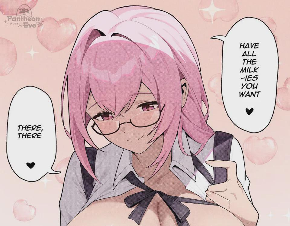 (画像翻訳: パンテオン、イヴ。好きなだけミルクをお飲み、よしよし)