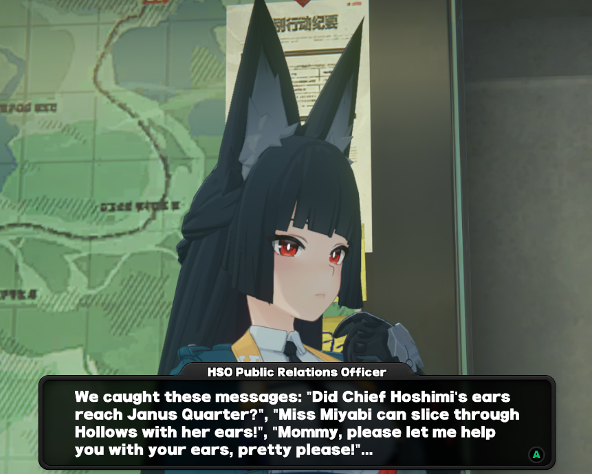 (画像翻訳: 広報「変なメッセージ届きすぎだろ…『雅様の耳、ジャヌス地区まで届いてね?』『雅様なら耳でホロウぶった斬れる説』『ママ!耳掃除させて!お願い!』とか草も生えない」)