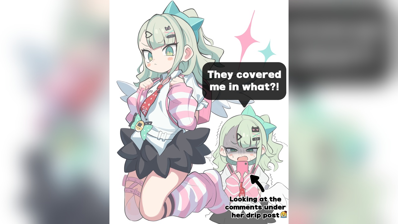 (画像翻訳: 「は?何ぶっかけられてんの私?!」公式の立ち絵ポストのリプ欄を見た時の反応)