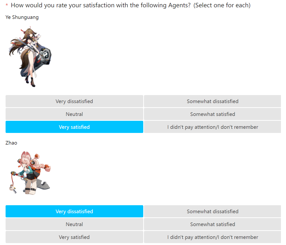 (画像翻訳: 以下のエージェントの満足度を評価してくれ(それぞれ1つずつ選択)