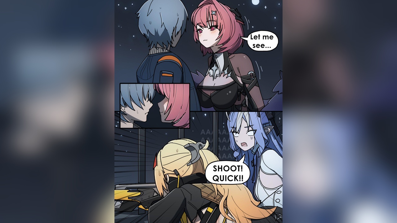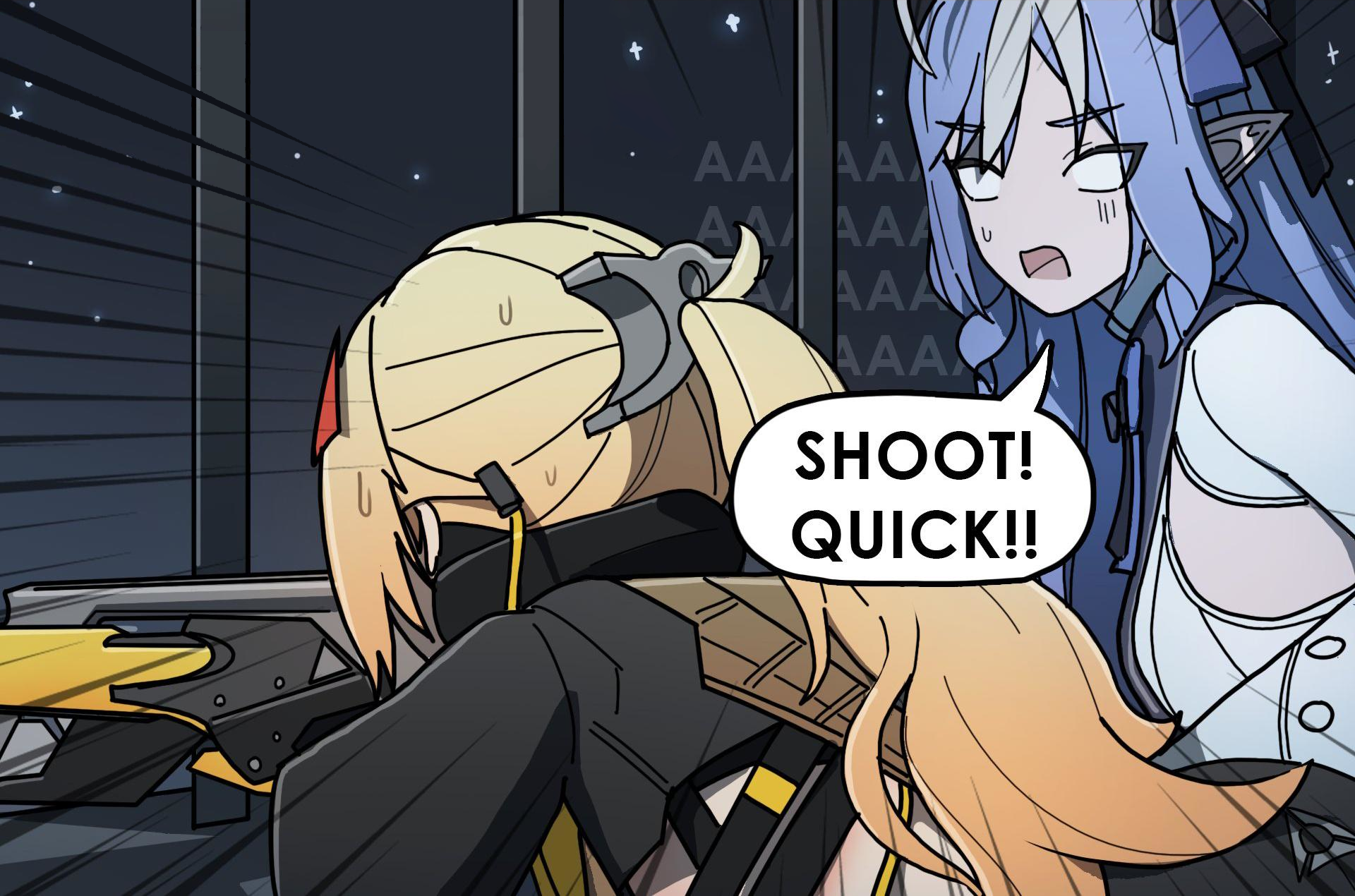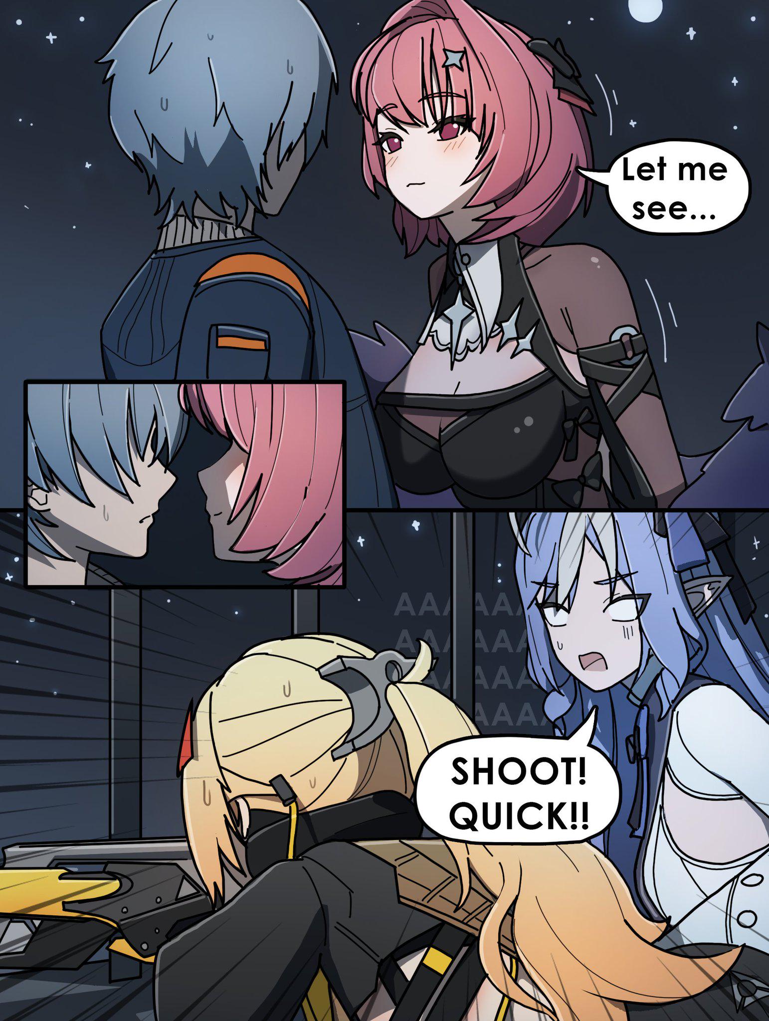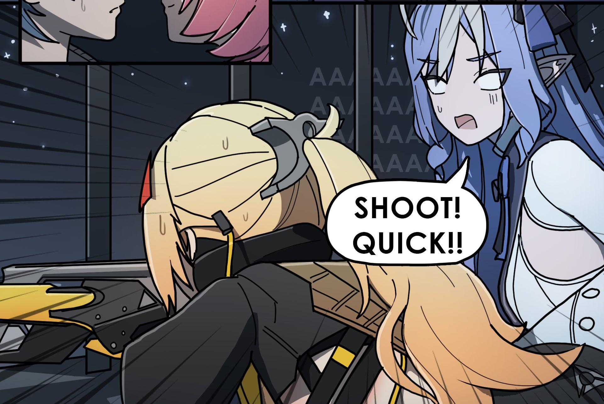 (画像翻訳: ちょっと見せてみ…… 早く撃てよ!!)