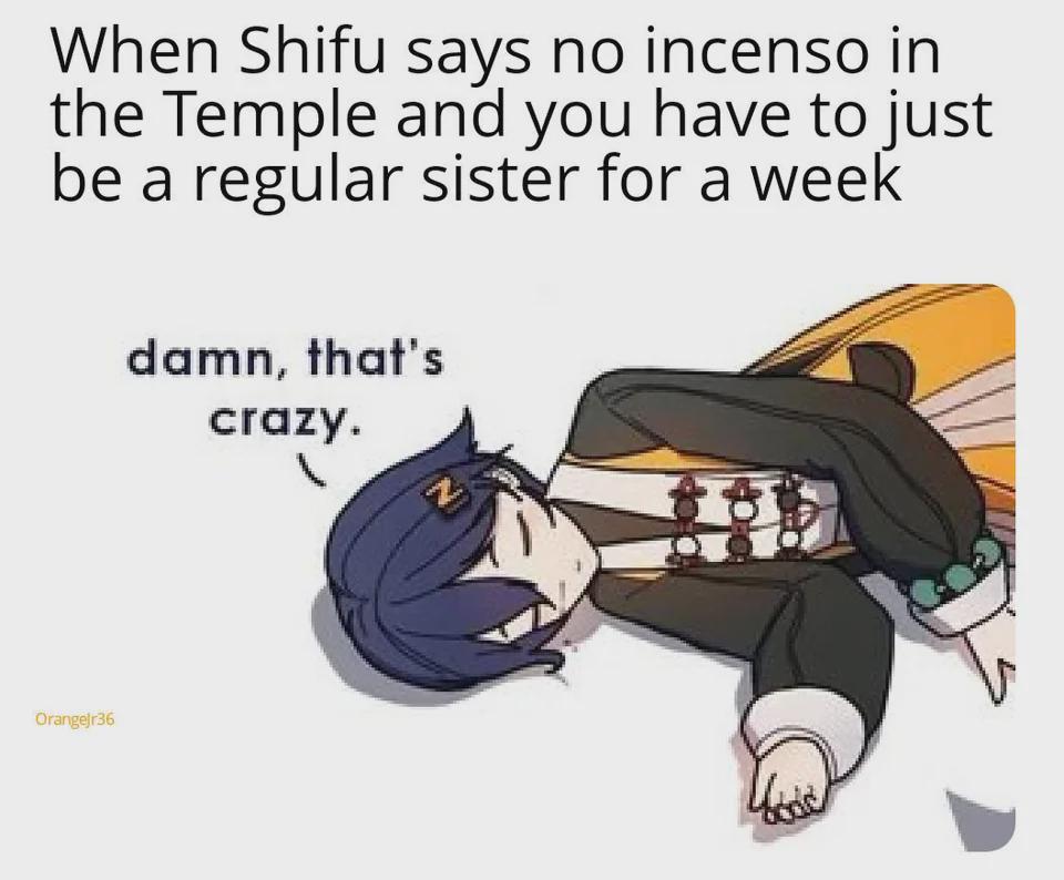 (画像翻訳: 師匠にお寺でのインセスト(incienso)禁止って言われて、1週間ただの妹として過ごさなきゃいけなくなった時の俺。これマジ?)